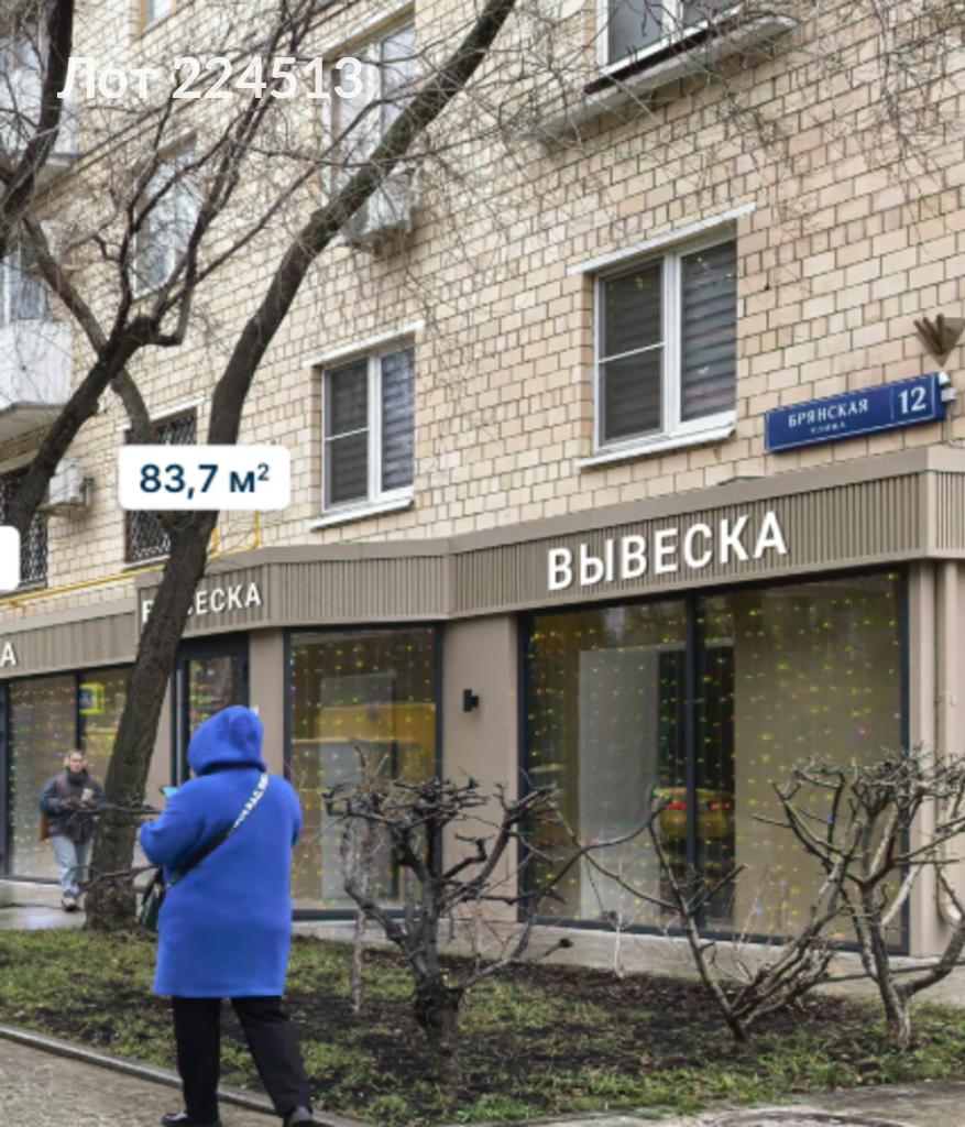 Лот № 224513 Предлагаются в аренду коммерческие помещения, расположенные по адресу: улица Брянская, ЗАО, город Москва. Помещения доступны для аренды и продажи в непосредственной близости от станции метро «Киевская», что обеспечивает высокую пешеходную и транспортную доступность.Объекты характеризуются значительным рекламным потенциалом, включая возможность размещения наружной рекламы на фасаде здания.